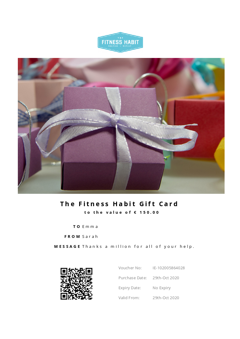 The Fitness Habit Limited allows you to purchase instantly printable gift vouchers, special offers and tickets using the Voucher Connect platform.